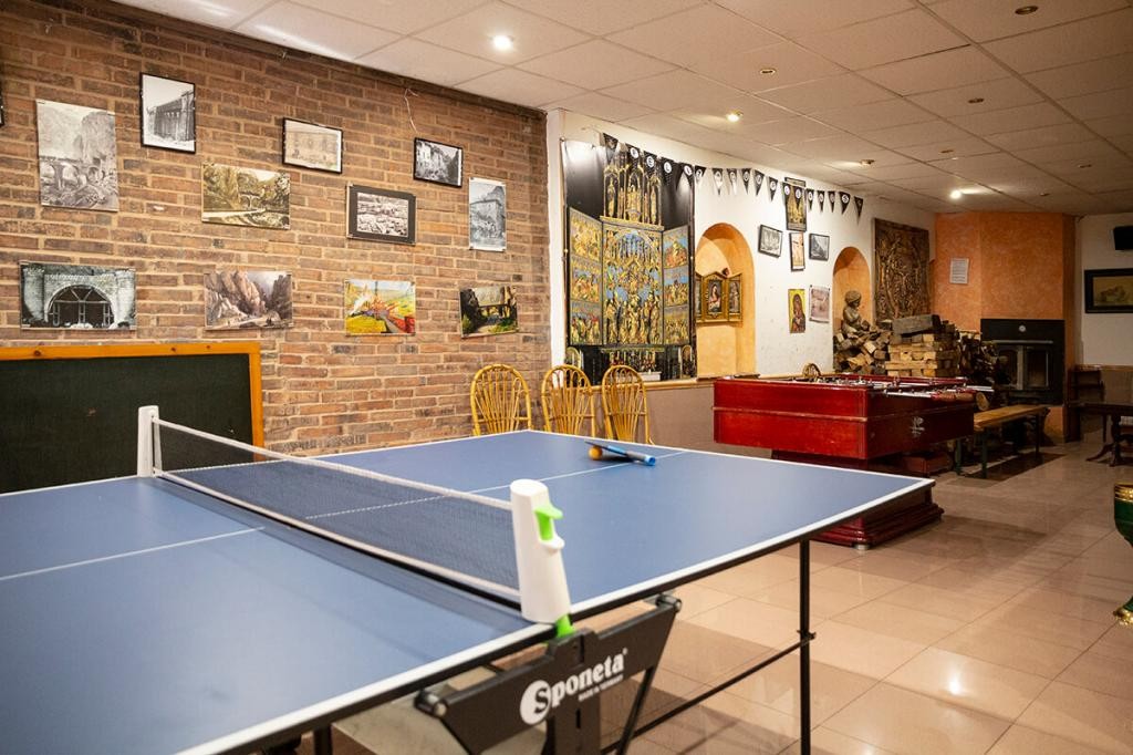 Dispone de WIFI gratis (fibra óptica) y parabólica , áreas multiactividades con ping-pong, futbolín y pantalla gigante con proyector, 8 habitaciones, 5 cuartos de baño, calefacción central de biomasa, gran cocina totalmente equipada, comedor de 35 metros cuadrados, salón de 50 metros cuadrados, con chimenea muy acogedor , salita con terraza, porche y un salón de 90 metros cuadrados para días de sol y lluvia.